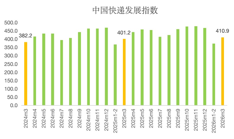 图1 2024年3月至2026年3月中国快递发展指数