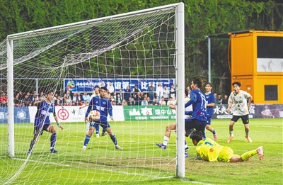 主场作战的琼中队凭借伤停补时阶段绝杀进球,以3:2险胜儋州队。海南日报全媒体记者 李天平 摄