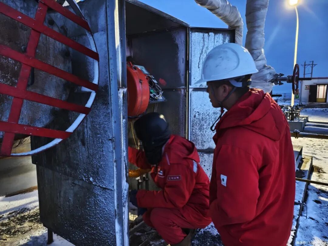 近2个小时后,李宝岭和聂晨飞抵达现场。负责切十六区块生产的班长秦鹏飞立刻迎上来:“李班长,你们可来了!我已安排罐车和泵车守住管线,就怕冻堵影响生产。”李宝岭来不及寒暄,立刻拿出工具,“小聂,赶紧排查故障!”