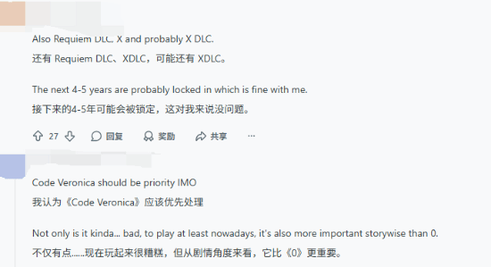 在玩家群体中呼声最高的不只《生化危机5》的重制,《生化危机0》、《生化危机1》、《生化危机:代号维罗妮卡》等经典都是玩家认为很有可能接下来重制的作品。